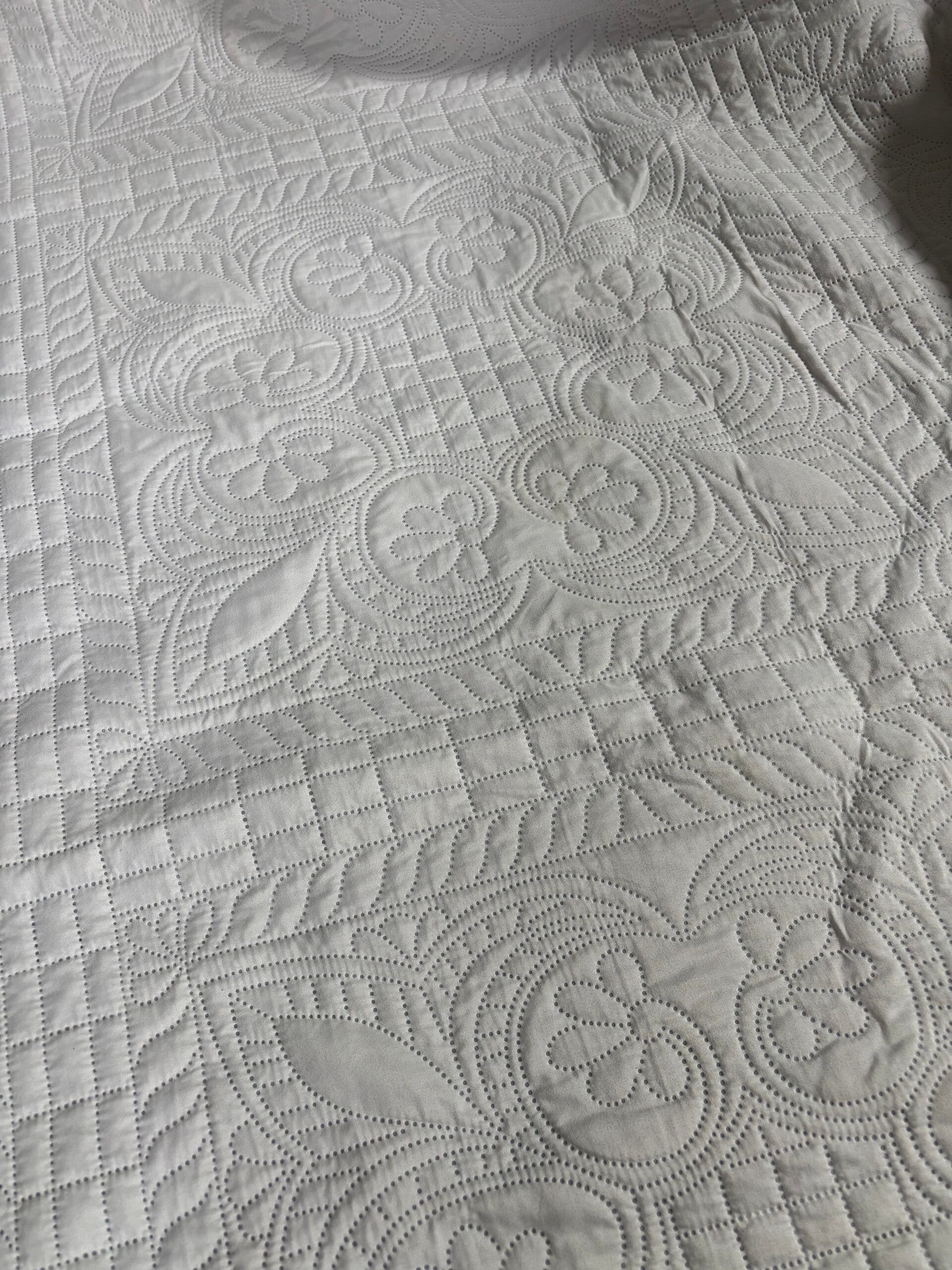 This week: I am working on some quilt crop pants. The quilt I'm working with is detailed so beautifully-it's pictured to the left. It felt sooo good to start this design project. I've been craving something... me, and these are DOING IT! I tried a new pocket style. Usually I go with oversize and square or sometimes adding a diamond type shape to the bottom of the pocket. but as I was creating I was on the phone with my brother and he said "what about doing something like a jean pocket?" GENIUS, so that's what I've done and I played with some different ideas for how to create the waist; I usually do a cinch waist, no elastic and more versatile in it's sizing. I haven't done the waist yet so you'll just have to see what I end up doing for that ;) Tailoring this past week I have been getting much faster at suit coats and suit pants- I can shorten a vented sleeve in 45 minutes or less, which is on par! I also learned how to grid out the buttons for kissing buttons on a sleeve because the button sewer has been down so I'm not using the button marker tool. The measurements are 1.5 inches up from the bottom of the sleeve, .5 inch in from the side of the vent and if you want your buttons kissing just under .5 inch, and if you don't want them kissing just over .5 inch. This is for standard suit buttons a good old medium sized button- which I'll measure next time I'm in- I assume they're .5 inch. I've learned a lot and am getting into the groove with creating at home and really becoming efficient and confident with my sewing at work. Until next time- love and light with us all <3
